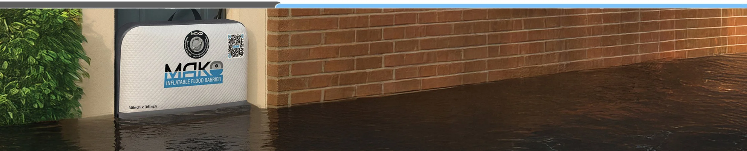 The MAKO™ Inflatable Flood Barrier is a rapid-deploy and reusable pressurized flood protection system. Mako is made from heavy duty pvc drop-stitch material. Once inflated, it forms a rigid wall that seals against the opening surfaces to block and divert flood water effectively.